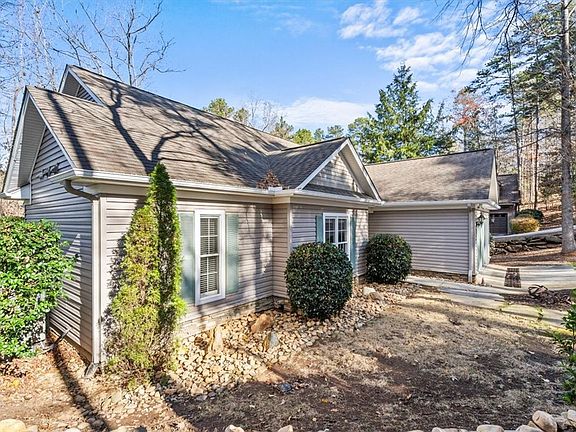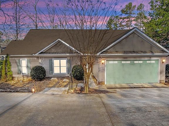 Live Where You Play! This lakefront gem has four bedrooms, three full baths and an open concept floorplan with the primary suite on the main level. There is a vaulted ceiling in the living/dining room and windows galore to take in the beautiful lake view and let in tons of natural light. The open kitchen features stainless steel appliances and granite countertops. Enjoy your morning coffee in the screened-in porch as you take in the serenity of the lake. The primary suite, located on the main level, has vaulted ceilings and lovely lake views along with two walk-in closets (one of which doubles as a laundry), a spacious bathroom featuring double vanities and a large walk-in shower. You can also access the deck from the primary bedroom. There is a second bedroom located on the main level that the current owner uses as an office. The lower level features two large guest rooms as well as a large family room and kitchen. Storage space abounds with walk-in closets, two kitchen pantries, a large workshop in the basement and an outbuilding under the deck for all of your lake toys. The walk down to the lake is VERY gently sloped and the covered dock features a LAKEEZE ladder and two kayak Stow and Go's. This sought after, gated community offers a beautiful 18-hole golf course, a state-of-the-art fitness facility with tennis and pickleball courts, indoor pool and much more. You can enjoy a lovely dinner at The Club Restaurant and breakfast and lunch at The Bistro. Come see all that this wonderful community has to offer.
