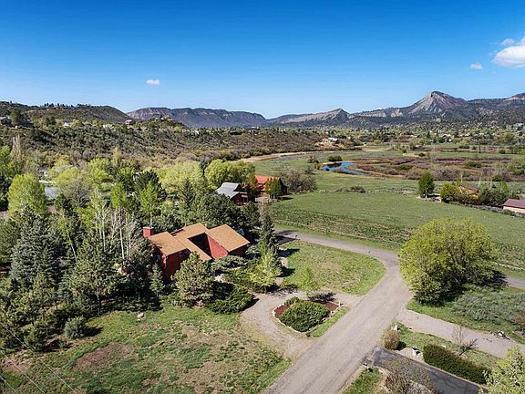 Welcome to Valley Acres neighborhood, a true gem in the Animas Valley. The home is located on a corner lot with amazing mountain and valley views. The interior of the home has so much to offer! This exquisite house features 3 bedrooms 2 1/2 baths and is situated in a serene location with breathtaking red cliff views. On the main level you will find a large kitchen that opens to the living room with a wood fireplace, two heated sunrooms, a large laundry room, and the primary bedroom suite. The primary bedroom features an en-suite bathroom with double vanities, a walk-in tile shower, and a walk-in closet. There is also access to one of the sunrooms through the primary bedroom. Upstairs you will find two guest bedrooms, a large guest bathroom, and spacious den/tv room with a deck overlooking the Animas Valley. There is a large attached 2 car garage, perfect for your vehicles or toys. The outside of the home is not to be missed. There are lots of mature pine and aspen trees; a beautiful green lawn with sprinklers; a rock fire pit; and plenty of space to park additional vehicles, trailers, or boats. The neighborhood features city water, paved roads, and is located a short distance to downtown Durango.