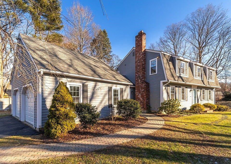 Welcome Home to your Sunny 4 Bed, 2.5 Bath Gambrel Colonial w/2964 sq ft of living space in a desirable, convenient location. Nestled in a quiet cul-de-sac this spacious home features Gleaming hardwoods, a living room w/fireplace, a generous family room flowing into an ample dining area, & a large kitchen w/gorgeous granite countertops & stainless appliances, plus a large half bath w/full size washer & dryer. A wide stairway leads to a large Primary bedroom w/window seat & private, updated en-suite, a 2nd large bedroom w/lovely window seat, 2 more spacious bedrooms & an updated full bathroom. The Lower Level has a large family room, exercise room with abundant storage, & a multipurpose room. An oversized 2 car garage w/tons of storage leads to a heated, enclosed breezeway w/access to the main living area & a back yard patio with firepit. An expansive, private, fenced, in-ground Swimming Pool area for fun & entertaining! Come see YOUR heartwarming new home! Offers due Sunday 1/17 by 6PM