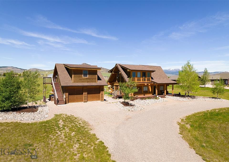 This 3 bedroom 2.5 bathroom Modern log home with open floor plan has a studio guest apartment (full bathroom, kitchenette, and washer/dryer hookups) and sits on 2.3 acres in the Pronghorn Meadows Subdivision. Take in the sweeping views of the Madison Range from the covered deck or one of the 3 balconies. The apartment above the two car fully insulated/heated garage can serve as guest accommodations, art studio, or home office (fiber optic). Greenhouse included. Pronghorn Meadows offers community equine facilities, wildlife corridors, and community clubhouse. Call to schedule your showing today. 2021-07-16