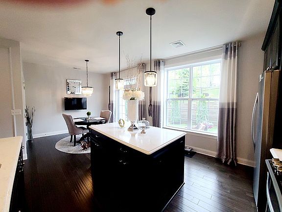 1TO 2 PERCENT BROKER FEE!!! Experience a sophisticated, country club like lifestyle at the Village of Rivington. This model like home offers an open floor plan with high ceilings, high-end hardwood floors, custom lighting, and custom crown and picture moldings throughout. Special features include expansive eat in kitchen with quartz countertops, designer, upgraded cabinetry, under cabinet lighting, large island with separate dining area, stainless steel appliances and sliders to a gorgeous stone patio. A large dining room, large living room and luxurious half bath complete your first floor. The second floor has two large en suite bedrooms with walk in closets. The expansive Master has vaulted ceilings and a designer custom closet system. Master bath has custom marble and tile with custom seemless shower enclosure. Secondary master bedroom also boasts vaulted ceilings with a private, custom tiled en suite bath. A separate laundry room completes your second floor. Full basement has tall ceilings, mud room area and a large one car garage.
