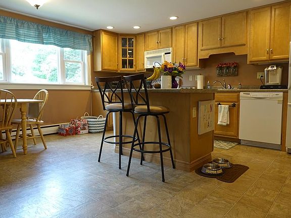 Fantastic starter home! Welcome to 30 Moran Heights! This charming two-bedroom ranch has been lovingly cared for and is ready for a new family. Through the convenient breezeway step into the large dine-in kitchen. Like to cook? With upgraded cabinets and plenty of countertop space, this is perfect for you! The island serves as a nice gathering spot, or grab a seat on one of the stools and have a bite. Off the hallway, you'll find a nicely sized bedroom that can be used as an office as well. The bathroom was handsomely remodeled. With beautiful hardwoods throughout, the master bedroom at the end of the hall has enough space to accommodate your king or queen-sized bed and has mirrored sliding closet doors for convenience. The expansive living room, splashed natural light from the picture window, features a beautiful stone-covered fireplace.
