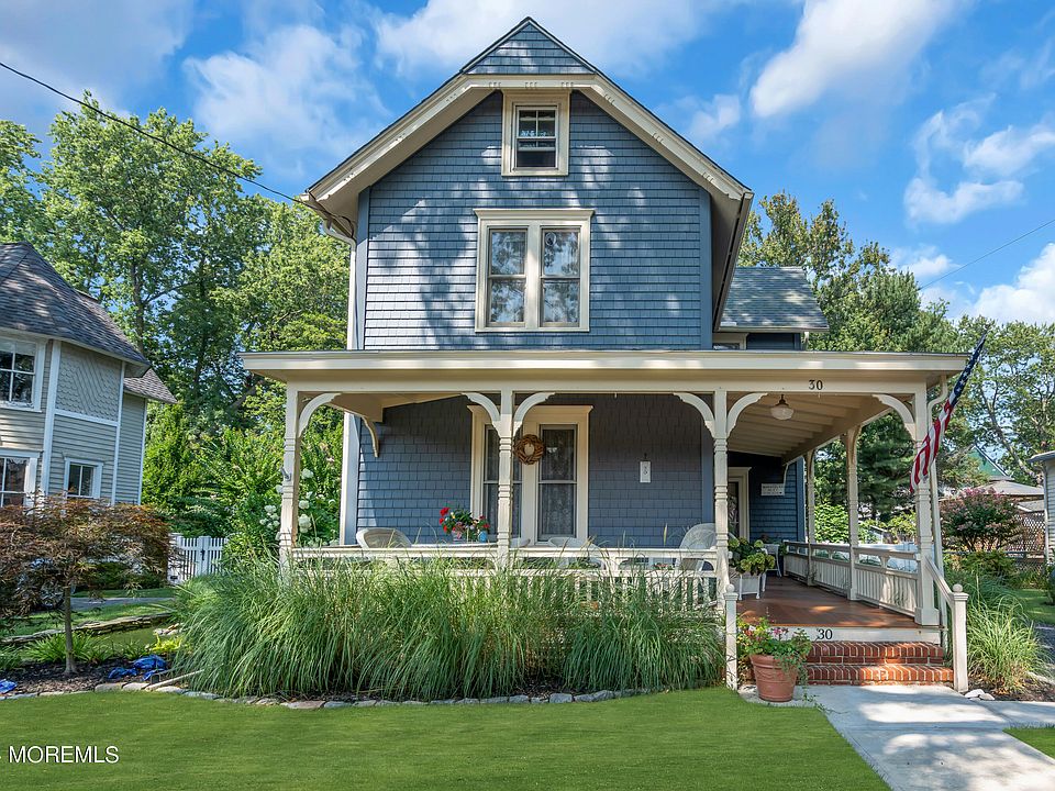 Come take a look at this beautifully restored Victorian with a beautiful mahogany front porch on one of the prettiest streets in desirable Manasquan! So much history in this house that was built by a Sea Captain! Fantastic flow of this home with level one living and dining rooms, family room and fully appointed kitchen. There is a full bath on the first level making it easy to transition one of the rooms into a first floor primary. Upstairs you have your primary w/en-suite, 2 additional bedrooms and another full bath. Aside from living in a beach community, your backyard gives you an in-ground pool for your own vacation oasis. Big ticket items already done for you including roof in '21, gutters in '23, newer siding, driveway and front sidewalk. Come check it out for yourself!