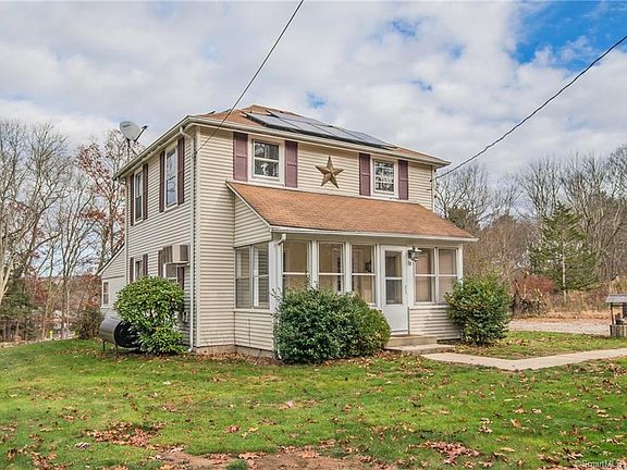 This colonial style home offers two 3 season rooms one on each end of the house. An open kitchen with a large living room on the main floor. Sitting in the open sunny back yard you can overlook Moosup pond. With some updating boiler 3 years old, roof 7 years old, new carpet upstairs. Don't miss out!