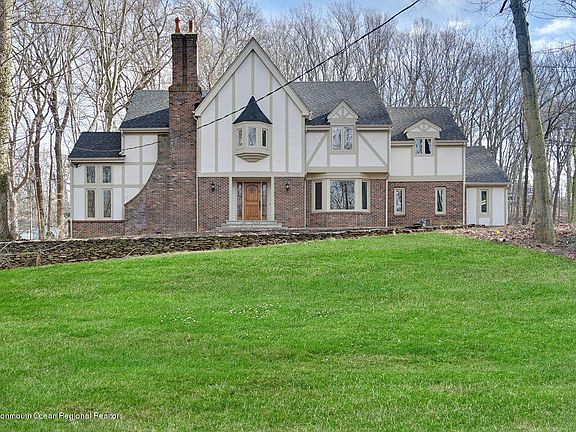 Renovated and Upgraded 4 BR, 3.5 Bath Tudor in the highly sought Clover Hill section of Colts Neck. Situated on 3.8 picturesque acres, this home features Hardwood floors thruout, NEW Furnace, NEW Roof, NEW Water Heater, NEW Windows, and NEW Vinyl Siding, two story Living Room w/ Floor to Ceiling Brick woodburning Fireplace, Dining Room, NEW Eat In Kitchen w/ Stainless Appliances, Center Island, and Custom Cabinetry, w/ French Door to Paver Patio, Four Generous Sized Bedrooms on Second Floor, including Master Bedroom suite w/ Huge Walk in Closet and NEW Master Bath w/ Glass Shower and Granite Double Sink Vanity, One Other Bedroom is En Suite, Full Basement and Two Car Garage. The perfect Colts Neck choice for you, the next Owner