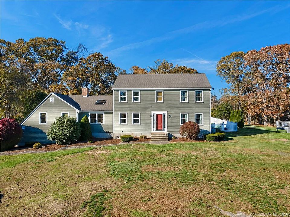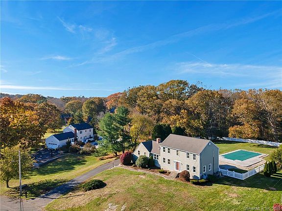 Colonial with heated, inground swimming pool This 3,000 sf home offers 4 bedrooms, 2 full and 1 half baths. The first floor includes hardwood flooring, lovely family room featuring a cathedral ceiling with exposed beams and a cozy wood-burning fireplace for those cooler New England months. The kitchen with stainless steel appliances offers an eat-in area/breakfast nook and access to the three-season sunroom. The living room can function as a den or a home office if desired. A first floor master bedroom features a walk-in closet and full bath with a shower. A powder room with laundry area round out the main level. Three additional bedrooms and a full bath are found on the second floor. This property provides wonderful outdoor spaces, including a completely fenced-in backyard, an expansive deck for summertime entertaining and a lush lawn surrounding a large in-ground pool. The lower level offers a partially finished area/room for a gym, work station, storage space and access to a two-car garage. Conveniently located close to major routes, highway and train station, perfect for commuters. Minutes to the historic Guilford Green where you'll enjoy an array of shops and restaurants. Central A/C. Close to the high school. On city water. Propane for the pool.