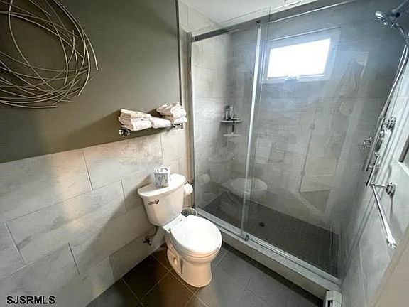 Just completed and awaiting your arrival. Newly remodeled high-end construction throughout this two-bedroom, two full bath, 1st floor 2-unit condo. Owner lives on the 2nd floor. Just steps from the bay and a short stroll to the beach, Ozzie's, Catch, the Longport Public Library, and the public fishing pier with gazebos & rocking chairs to watch the beautiful sunsets on the water. Features include private one-car off street parking with a Tesla EV charger in the driveway, covered front porch with EP Henry cobblestone pavers, new exterior patio furniture, table and chairs, propane BBQ and tools, private outdoor shower, and all new energy efficient windows & 2 exterior doors. The tasteful interior boasts custom furnishings along with : Mohawk top-quality vinyl plank flooring, Wellborn Designer open- concept kitchen cabinets with marbled countertops & above the peninsula bar, glass tiled backsplash and a fully stocked kitchen, for those who love to cook. Cutco knives make meal prep a breeze. The appliances are custom Italian Bertazzoni with convection cooktop and induction oven, dishwasher, fridge, and a Sharp In-Drawer microwave. The master bedroom has a queen size bed with 2 separate wall sconces and a master bath with walk in shower. The guest bedroom has two twin beds. Remote control ceiling fans with light in both bedrooms & living room. Custom tile work throughout. Sound barrier insulation was installed in the ceilings, bathrooms & bedrooms for maximum quiet and efficiency, and a separate thermostat for your personal comfort. Full sized Electrolux washer & dryer, a 55' smart Samsung TV with sound bar in LR & a 42' Samsung in master. All closets custom fitted with Elfa Container Store components for maximum efficiency & storage. All new plumbing, electric, HVAC, and central air conditioning complete this fantastic & meticulous restoration. No pets & no smoking or vaping of any type allowed on the property. 4 seasonal beach tags are included. Available Full Summer $25,000 July $13,500 August $14,500