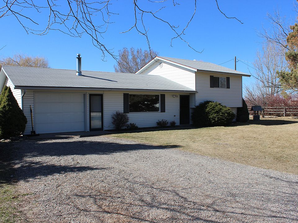 Country living just outside the city limits! This home is on a .95 acre lot with water rights. The home is a split level and has 3 bedrooms and 2 baths and an additional room downstairs that could be used for an office or bedroom. The home is 1,514 square feet with a one car attached garage. There is a 518 square foot addition to the back of the home that has been finished and includes the laundry room. New paint throughout most of the house, new carpet in upstairs bedrooms, vinyl windows and siding, efficient natural gas heat with two free standing natural gas stoves. The property includes a pasture with corral, storage shed, garden area, fruit trees, and mature trees providing a lot of shade. This home is located in a quiet neighborhood and only a few miles from town! It's the perfect balance between city and country.
