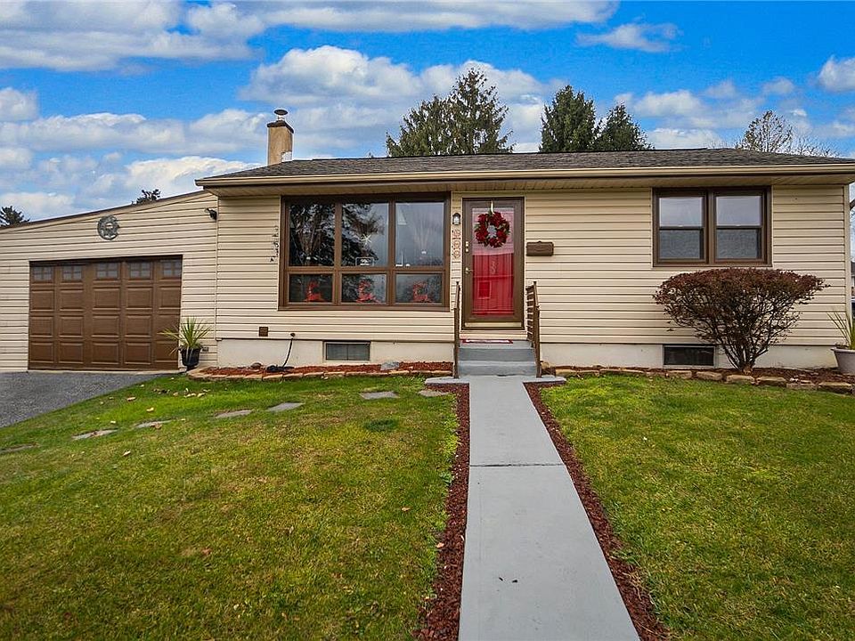 HIGHEST AND BEST OFFERS DUE BY 8:00PM 12/12/23. Nestled on a picture perfect street, sits this charming 3 Bed, 1.5 Bath Ranch home with 1,700+ Sqft of living space! The front door welcomes you into the bright and airy living room with stunning hardwood floors throughout. Showcase your culinary creations in the beautifully functional kitchen, featuring a pass thru window & pantry. Gather around the table in the elegant dining room embellished with rustic exposed beams and cathedral ceiling - the perfect space to host for your guests! Two spacious bedrooms and a full hall bath complete the main floor. Spend quality time in the finished basement offering 680 Sqft of living space, which includes a cozy family room for your entertainment. A third bedroom/bonus room, laundry, powder room & storage space complete the finished basement! Enjoy your outdoor oasis on the concrete patio, overlooking the generous backyard. With an attached 1 car garage, and convenient location within minutes of Dorney Amusement Park, Cedar Crest College, parks, trendy eateries & much more! This home is a gem and won't last long!