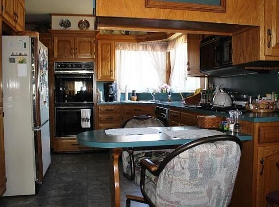 Solid built house with Ohio sand stone. Custom built solid oak kitchen cabinets with dining area, lower level family room with fireplace and an additional kitchenette. Enclosed breezeway porch and oil heat with cast iron baseboard heat.