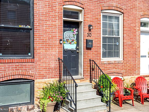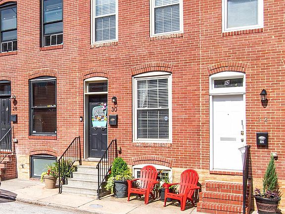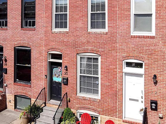 Welcome home to 30 North Curley Street! This charming and well maintained brick rowhome has private parking and is only steps from beautiful Patterson Park. It's a very short distance to the Canton/Fell's Point waterfront, Johns Hopkins Hospital, Highlandtown Arts and Entertainment District, restaurants and shopping. Both I-95 and I-83 are within a couple miles for easy travel outside the City. The main level has an inviting open floor plan with wonderful natural light, LVP flooring and exposed brick. There is a spacious living room, kitchen with dining area, and a half bath. The exposed brick continues on the stairs to the upper level which has two bright bedrooms, high ceilings, and a full hall bath. The large unfinished lower level has a laundry area and abundant storage. The rear porch which is perfect for relaxing outdoors is just off the kitchen. The adjacent parking pad is easily accessible from the rear alleyway. Don't miss the opportunity to own this lovely home. Schedule a tour today!