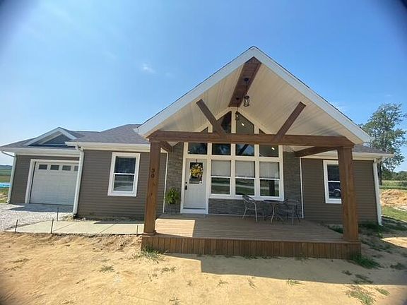 This beautiful, newly constructed home features 3 spacious bedrooms and 2 full bathrooms. It boasts an attached oversized 1-car garage and plenty of storage space for all your needs. The open concept layout is perfect for modern living, with a stylish kitchen featuring a large island, ideal for both cooking and entertaining. The living room has a 14' cathedral ceiling.The home's front exterior is welcoming and thoughtfully designed. Step outside to the back patio, where you'll enjoy a poured 10'x16' decorative patio, perfect for relaxing or hosting guests with amazing sunsets. This home combines both functionality and beauty, making it an ideal choice for your next move!