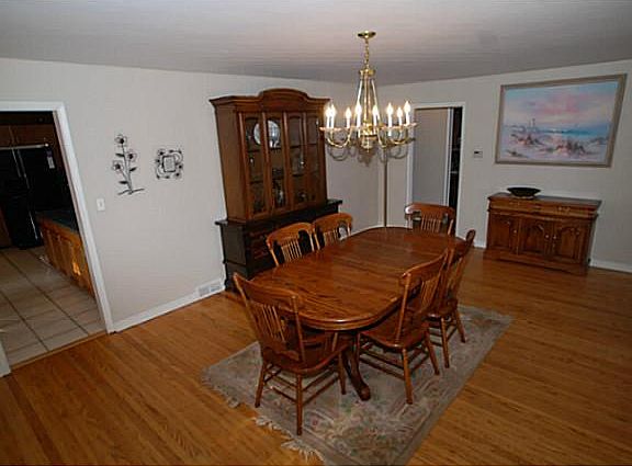This 3 bedroom Ranch features large great room, huge dining room, spacious eat-in kitchen with ample cabinets and counters. Hardwood floors, Updated bathroom with double sinks. Plus finished rec room and half bath in basement. Room for 1st floor laundry. Large backyard is semi-private and fully fenced, with deck and storage shed. Quarter acre lot with perennial gardens in front and back. Quiet neighborhood in convenient location.