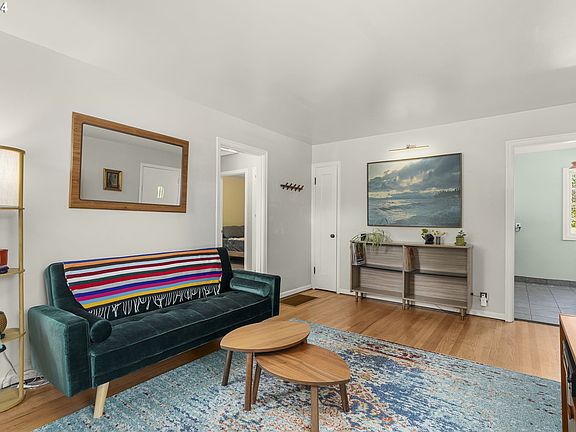 Situated on a sunny corner lot, this sweet Piedmont bungalow is abundant with charm inside and out. The home greets you with an efficient layout, gorgeous oversized windows, 1940s build quality, gleaming hardwood floors, and thoughtful updates. Rejuvenation hardware and lighting bring modern elegance to original vintage details, while the light-filled garage conversion offers a versatile space perfect as an additional bedroom or sunroom. Experience the ease and comfort of single-story living at its finest. Step outside to two spacious yards, the backyard - with raised garden beds, multi-grafted cherry tree, native and mature plantings & corner front yard - with a delightful array of blueberry, currant bushes & fig tree, creating a verdant food forest around the house. Enjoy the serene brick patio, ideal for relaxing or entertaining, and the fully fenced yard, perfect for children or pets to play safely. The handsome storage shed holds endless possibilities - future sauna conversion? This property is ready to become your private haven. Upgrade list: Kitchen counter refinished & painting refreshed (2024); wood floors refinished (2023); new fencing (2023); HVAC serviced in (2023); new tub tile surround & Kohler fixtures (2022); solar-powered attic fan; garage conversion to a finished room w/ premium Marvin sliding glass door; new Bosch 800 luxury stainless steel dishwasher; Nest thermostat & Blink camera system; chimney built & repointed; new pex plumbing supply lines for bathroom & kitchen sink; re-plumbed front hose bib; brand new vapor barrier. Easy access to all your shopping needs, including New Seasons, Fred Meyer, & Woodland Farmer's Market. Walkable proximity to coffee shops & eateries like Woodlawn Coffee & Pastry and Ps & Qs. Short jaunt to Peninsula Park for community fun, BBQs, and the glorious Peninsula Park Rose Garden, home of the Mme. Caroline Testout rose, which earned Portland its nickname the "City of Roses." [Home Energy Score = 2. HES Report at https://rpt.greenbuildingregistry.com/hes/OR10228539]