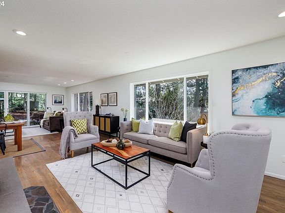 Fresh and updated mid-century modern with detached studio/shop sits on private .53-acre lot in the coveted West Haven neighborhood of Washington county. Open living space on the main floor features real oak hardwoods, chef's kitchen, fireplace, and loads of natural light. 2 beds on main, plus 3 on the lower level. Daylight basement with family room and fireplace. Lower level laundry and storage room. Home has been seismically retrofitted and foundation walls reinforced. Attached 2-car garage offers structural reinforcement for indoor play area; plus 230 volt electrical. Detached studio with full bathroom and concrete floors is ideal for home office, workout or craft room. Gardener's paradise with garden beds and 12 fruit trees (see "features list" for exact kinds). Outdoor space includes two patios, firepit, and combination of manicured and natural landscaping. New roof in 2012. Owned solar-panels. Fresh interior and exterior paint (2024). Low WA county taxes. Convenient to Nike, Intel, Hwy 26, and downtown. A rare find!