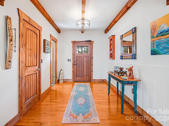 This beautiful, one level home has an open floor plan that is so inviting and perfect for entertaining. You can cozy up next to the fireplace in the winter or enjoy the covered back porch with ceiling fans in the summer. Each bedroom is spacious with plenty of storage. The primary bedroom and bathroom feel like your own private retreat with dual closets and sinks, as well as an amazing freestanding soaking bathtub and walk-in shower. Recent updates include a water filtration system, gas logs, gutter guards, interior painted, sink added in laundry room & epoxy coated garage floor. The sellers have also added stairs to backyard, added stucco to foundation, trim painted outside, & over $30,000 in landscaping. The crawl space has plenty of room for storage & a climate-controlled workshop area. Enjoy the quiet, convenient Hawks Cove neighborhood less than 10 minutes to all Weaverville has to offer. Drive an additional 10 minutes and you are in the heart of Asheville.