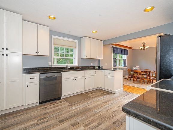 This Contemporary in the Cranberry Meadow Lake community is ready for it's new owners! Unique features give a lofty, vacation at home feel with it's vaulted ceiling and second floor hallway overlooking the family room/dining area. Skylights and sliders keep this main living space light and bright and the pellet stove with large hearth lends to it's cozy feel. This high efficiency home has been buttoned up so you can relax year round! Updates from current owner include kitchen remodel with new appliances, replacement windows, vinyl siding, composite decking on both 8' x 28' deck and 12' x 24' deck, new carpeting, fresh paint! Mini split system installed in 2022 has 3 but can support 4 zones! Electric hybrid water heater. Main floor bedroom with two large bedrooms upstairs! Two full baths, one for each floor! Large basement ideal for work shop and/or storage. Convenient to Rte 31, Rte 20 and the Mass Pike! Includes 2 additional parcels total .45 acres. Nothing to do but move right in!