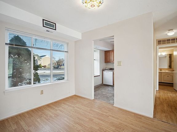 Welcome to Hampden East Condominiums! This 2-bedroom, 1-bath unit offers comfortable and convenient living with modern updates. The open floor plan features a dining room with a picture window for natural light and a spacious living room with a slider leading to a private patio with partial coverage. The kitchen is equipped with a refrigerator (2022), dishwasher (2021), electric stove, and microwave. The primary bedroom includes a walk-in closet and in-unit washer and dryer. Additional storage is available in the hallway's double-door closets. Enjoy the assigned parking spot and ample guest parking. The community features an inground pool and a clubhouse for residents. Conveniently located near restaurants, Veteran's Golf Course, grocery stores, specialty shops, pharmacies, and more. Don’t miss the chance to make this condo your home!