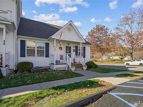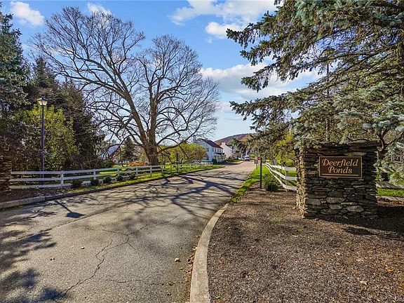 Resort type living. Spacious and bright 2 bedroom END UNIT townhome located in an IDEAL location within the complex. Beautiful view from the back deck. FINISHED and spacious lower level with 1/2 bath and wet bar. This unit is lovingly maintained and immaculate. The eat-in-kitchen boasts ample cabinets and counter space. The living room and dining area are spacious and sunny. Great layout and flow! Lots of storage. There is 602 sqft of FINISHED space in the lower level. An additional 525 sqft. of UNFINISHED space currently being used for storage and workbench. Enjoy barbecues on the generous deck overlooking the beautiful setting of the Hudson Valley. Plenty of closets and storage throughout. Central A/C. New roof, and other updates. Close to all, great commuter location. Enjoy all that Deerfield Pond offers such as inground pool, tennis, basketball, clubhouse, and playground. Deduct $1,892 for STAR. Please note 2 handicap spaces in the front can be removed by Association.