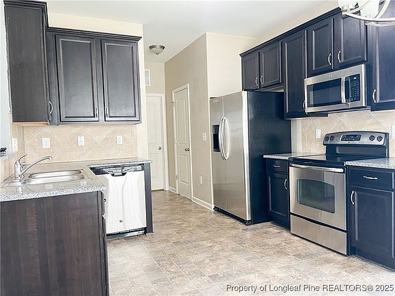 Pictures were taken prior to current tenant move in Discover this beautiful 3-bedroom, 2-bath home with a single-car garage, nestled in the charming Village of Lexington Plantation. The master suite offers a private en suite with a dual vanity, soaking tub, and a stand-up shower. All bedrooms are conveniently located upstairs, while the walk-in laundry room is situated on the main level. The kitchen is a chef's delight, featuring stainless steel appliances, granite countertops, and ample cabinet space. Enjoy outdoor gatherings in the fully fenced backyard, which includes a covered patio perfect for entertaining. The community offers excellent amenities such as a pool, park, clubhouse, and fitness center. Located just a short drive from Fayetteville, Fort Liberty, and Sanford, this home combines comfort and convenience in a vibrant neighborhood. - Pets upon approval -