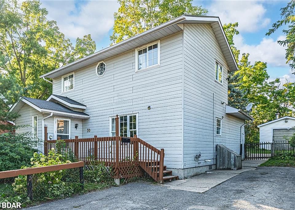 CENTRAL BARRIE 4-BEDROOM GEM WITH RM2 ZONING, DETACHED WORKSHOP, PRIVATE LOFT OFFICE & A LUSH BACKYARD ON A DEEP TREED LOT! Discover endless possibilities with this centrally located home in Barrie’s lively City Centre neighbourhood, where convenience and opportunity meet. Enjoy walking distance to schools, parks, shopping, and dining, along with quick access to public transit and Highway 400, while Kempenfelt Bay’s sandy beaches and scenic shoreline trails are only five minutes away. The impressive 54 x 223 ft lot offers mature trees, lush green space, full fencing for privacy, and a garden shed, providing plenty of room for entertaining, gardening, or simply relaxing in your own private outdoor retreat. A detached workshop with a 60-amp panel adds versatility and can be converted back to a garage if desired. Inside, the main level is filled with natural light, featuring a spacious living and dining area with an oversized front window and a functional kitchen with a pass-through and walkout to the backyard. Three comfortable bedrooms and a 4-piece bathroom complete the main floor. Upstairs, an expansive primary suite delivers a walk-in closet and private 4-piece ensuite, plus a loft with its own separate backyard entrance - ideal for a private home office or creative studio. The partial basement includes laundry facilities and storage space, complemented by a 200-amp panel for reliable power. With versatile RM2 zoning creating exciting opportunities, this property is an excellent choice for first-time buyers, investors, or developers looking for their next #HomeToStay.