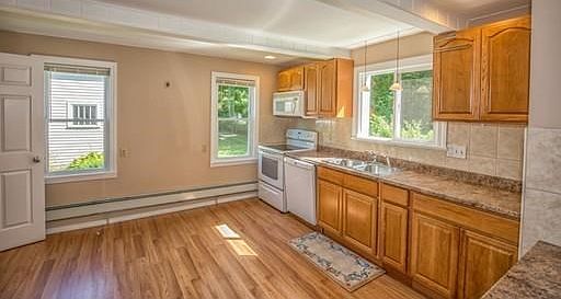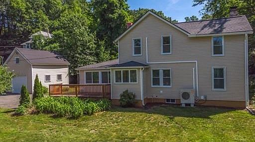 Welcome Home! Charming colonial located on a dead end street on 1.36 acres of land, with nature all around you! 3 bedrooms with recessed lights, 2 full bathrooms, a large living room with built in cabinetry and a fire place, office or play room, a bright sun room, bright and updated kitchen, and gleaming hardwood flooring throughout. Recent updates include new vinyl siding, new windows, new kitchen, new bathrooms, new high efficiency natural gas boiler, new water heater and a newer roof (APO 10 years old), and two new mini-split cooling/heating systems to make your home comfortable. Nothing to do but move in and enjoy the privacy, peace and quiet on the deck. Within walking distance to a ball field/play ground/spray park! Close to everything yet tucked away for privacy. This home is a must see!