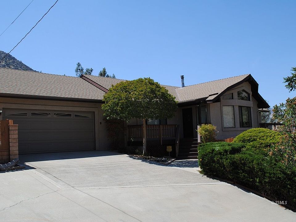 High Quality, Custom Home! Energy efficient 2"x6" exterior frame construction! The home contains 1,670 square feet in a very functional, single story open floor plan! The home is located on an elevated corner lot, "High on the Hill" in Kernville offering SPECTACULAR MOUNTAIN and VALLEY VIEWS! The front patio deck leads to a spacious Living Room w/ gorgeous vaulted wood ceiling, large bay window plus brick hearth with a porcelainized wood burning stove! The Living Room opens to a 2nd private patio deck , the Mountain & Valley Views are Tremendous! The Living area includes an adjoining Dining Room with vaulted ceiling & a huge picture window with more "Great Views"! The Kitchen features rich, custom oak cabinetry, ceramic tile counters, eating bar and backsplash! Distressed Pine Laminate Flooring is used throughout. There are 3 bedrooms and 2 full bathrooms including a Master Suite w/ vaulted ceiling, bay window, patio access & custom private bath! Other Great Features include a 3rd "Pebblecrete Patio" with a custom Cal Spa and BarBQ area, an Oversized 2 car attached garage, gated RV Parking! AN EXTREMELY NICE PROPERTY, OUTSTANDING LOCATION!