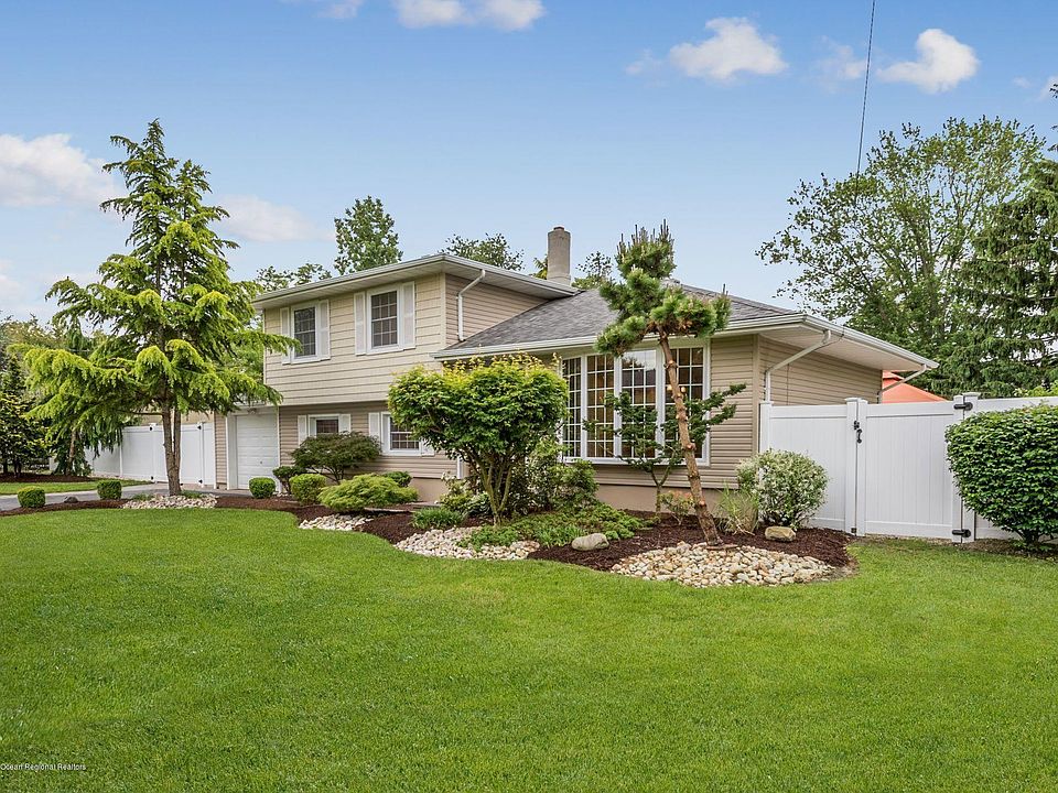 Come and see this immaculate 4 bed 1.5 bath home in the Ramtown section of Howell. This home features a huge family room, a newer kitchen with a center island, 4 spacious bedrooms with lots of recessed lights and ceiling fans. The entire interior has been freshly painted and every corner of this home is updated and lovingly cared for. The property is professionally landscaped with underground sprinkler system and extensive paver-walkways, and the huge backyard features a large paver patio that extends to the treks deck and swimming pool, beautiful trees and completed fenced-in outdoor space is great for entertaining. It even has a finished man-cave in the backyard! The location is just perfect for the commuters, only 3 minutes to the GSP.