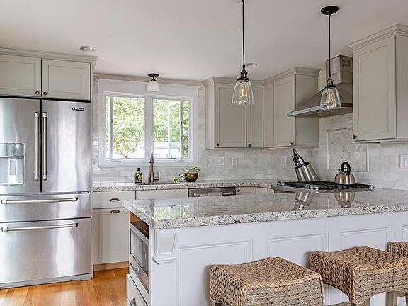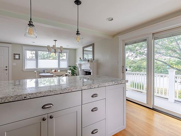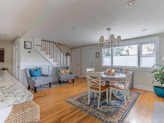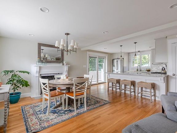 This modern, well kept cape style home is located at the end of a cul-de-sac with attention to detail in every room. Enter to a young, updated open concept kitchen and dining room with fireplace and custom mantel, counter seating at the extended peninsula, and professional series stainless steel appliances. A picture window and glass slider allow natural light to pour in to this fantastic space! Recessed lighting, hardwood floors, wooden interior doors, gleaming crown mouldings, and carefully selected hardware and light fixtures accent it all. Pass by a half bath with laundry on your way to the master suite with walk-in closet and private bathroom featuring fully tiled & glass door shower and custom vanity. Upstairs find two good sized bedrooms, great closet space and a full bathroom with jetted tub. On the lower level you will find a partially finished basement with family room and custom built wet bar. Walk up and out to a spacious backyard fantastic for entertaining with huge patio and movie screen! Other exterior features include raised vegetable garden bed, play area, automated sprinkler system and maintenance-free decking for front and side stairs. HVAC, electrical, plumbing, roof, and on-demand water heater have all been updated in last 5-10 years. Close to public transportation, and all Route 1 has to offer.