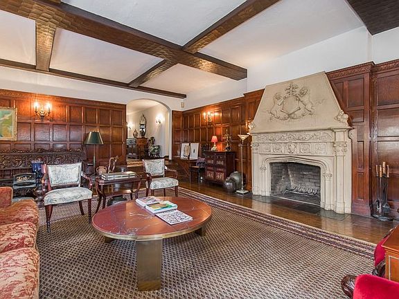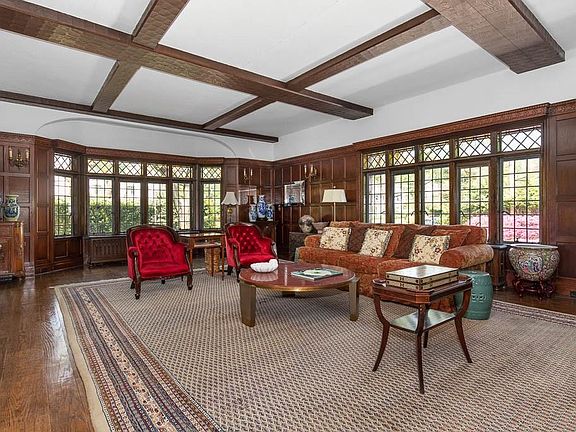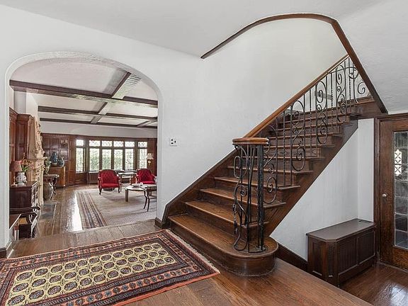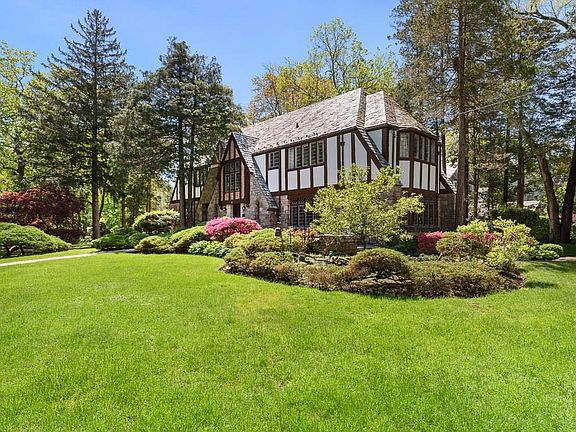 Exceptional Tudor in very desirable location in Fox Meadow. This impressive residence is located steps away from the Scarsdale train station, Village shops,Scarsdale High school,Elementary School & Public Library.Featuring 5,761 square feet of elegant interiors, this home's exquisite old world details present a rare find.The majestic step down living room features an original limestone carved fireplace with slate hearth, solid wood paneling, hand scalloped beams & breathtaking leaded windows. The formal dining room is generously sized & boasts leaded glass French doors and two window exposures. The cozy wood paneled library is located near the entrance hall. The Eat in Kitchen features custom cabinetry with granite countertops, an island and butler's pantry. The breakfast area offers lovely views of the property. The elegant master bedroom is grand in scale and features vaulted ceilings, a green onyx master bath & generous closets.Six additional bedrooms complete this special property.