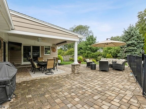 Find one-level living at its finest in this meticulously maintained ranch on 0.63 acres, featuring 13 rooms including 4 bedrooms and 4 full bathrooms. A true one-of-a-kind chef's kitchen, with its breakfast bar, center island, granite counters and stainless-steel appliances, is the heart of the home. Enjoy the spacious primary suite with walk-in custom closet and luxurious bath featuring a heated floor. An office, den and living room with gas fireplace and sliding door to the backyard complete this level which features beautiful hardwood floors throughout. Downstairs you will find a spacious family room with gas fireplace and small kitchenette for snacking, an exercise room, a sleeping room with full bath and lots of storage. You'll be sure to enjoy the enchanting private backyard with in-ground salt water pool, a covered patio, lush landscaping and paver surround. This home has been well maintained to include new HW heater 2023, exterior painted in 2021, pool heater 2021, refrigerator, range and microwave 2021/22. Its many amenities include 3-zone HVAC, whole house instant hot water, Anderson windows, central vacuum, sprinkler system, security system, and home audio system. New Jersey Transit and Routes 78 & 287 provide efficient access to NYC and New Jersey's numerous corporate centers and world class shopping.Fireplaces and chimneys conveyed "as is" with no known issues