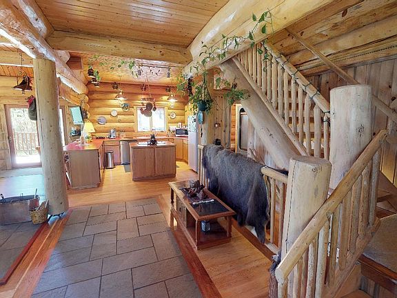 Remarks: Come enjoy the privacy of this 85+ acre property nestled just outside of the tranquil town of Hot Springs, Montana. The rustic log home sits back in the trees and overlooks the valley, mountains, meadows and private pond fed by Hot Springs Creek that meanders through the property. The home features a spacious master suite on the upper level, with 2 balconies, along with an open loft area. The main level includes the living space with a wood burning stove, in addition to two bedrooms and full bathroom and an expansive wrap-around deck. The lower level features a tuck-under oversized double stall garage, family room, three-quarter bathroom, laundry room and utility room. Exterior features include additional outbuildings, and driveway that circles through the property for easy access.