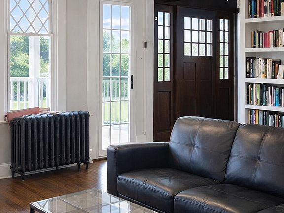 Welcome home to this beautifully preserved and thoughtfully updated Victorian set behind a wide wrap-around porch and twin bay turrets. Inside, period millwork, diamond-pane windows, and rich hardwoods meet fresh, bright finishes for a timeless yet modern feel. A series of light-filled rooms flow around a dramatic coffered-ceiling salon where French doors and decorative columns create an elegant centerpiece. The black shiplap fireplace anchors the adjoining living room, framed by walls of windows that bathe the space in natural light.