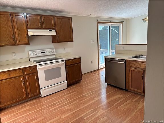 Responsibly, well maintained 3 bedroom, 2 bath Ranch with attached 2-car garage has hardwood and laminate floors throughout the 1,400 sq ft home. Sizable living room and dining room with sliders to deck overlooking private backyard. The kitchen has a separate breakfast nook. Principal bedroom has 2 closets and a private bathroom. Full basement with washer/dryer hookups. Central air. Oil heat. A short distance to town center for Branford's history along with a multitude of subjects and activities at what many consider the most astonishing, architectural-designed library in CT, the James Blackstone Memorial Library. Stroll down Main Street, stopping to visit the BACA Gallery and well-established boutique shops, and dine at many sumptuous restaurants. Excellent credit and references required. Pets may be considered; subject to owners discretion.