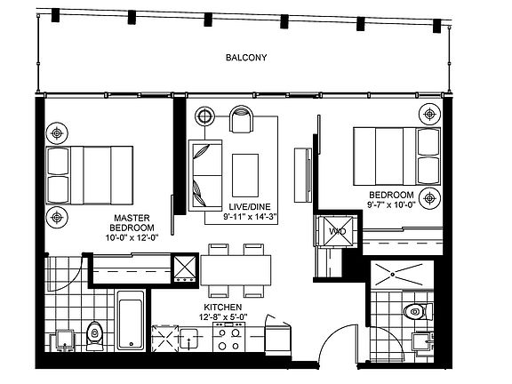 Oversized balconyEfficient floorplanLaminate flooringHigh ceilingsAmple storage space