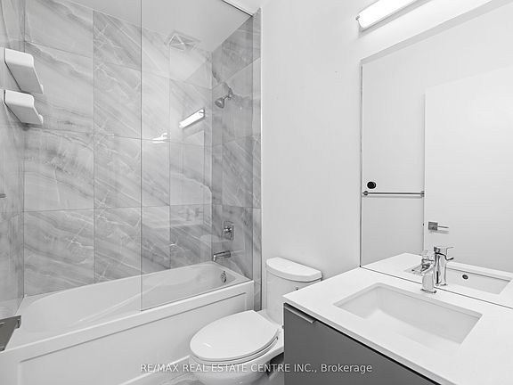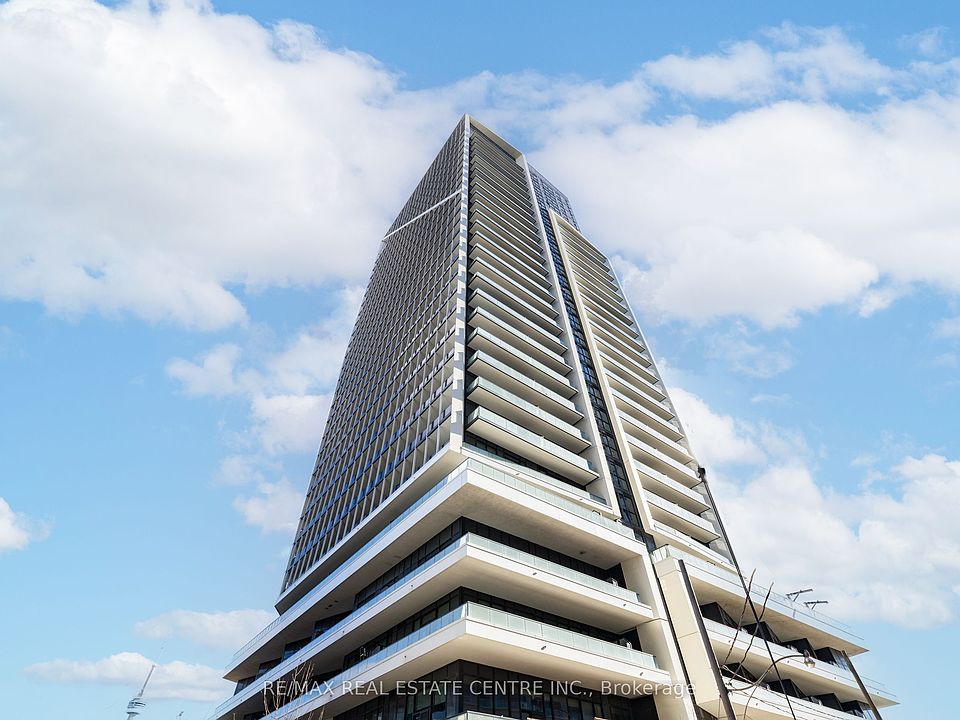 Experience elevated downtown living in this exceptional, luxury condo located steps from Liberty Village. This beautifully designed 1 Bedroom + Den residence offers an airy open-concept layout with soaring 9.5' smooth ceilings, high-end finishes, and expansive windows that showcase breathtaking views of the CN Tower, the city skyline, and the lake.The upgraded kitchen features quartz countertops, marble backsplash, and stainless steel appliances. The versatile den serves perfectly as a dedicated office or second bedroom. Enjoy two oversized balconies, in-suite laundry, and the convenience of one parking space and a locker.Indulge in resort-style amenities including a state-of-the-art fitness centre, outdoor pool, theatre, guest suites, 24-hour concierge, and more. Situated next to a 4-acre park and pedestrian bridges, with easy access to TTC, the lake, major roads, and everything downtown has to offer. A rare opportunity not to be missed.