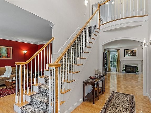 Welcome to an intelligently designed 5 bedroom, 4 1/2 bath home that proudly sits within a cul-de-sac, in-town location. You're welcomed into a large foyer that leads you to an open concept 1st floor with high ceilings, recessed lighting & gas fireplace family rm. A wonderful setting to entertain & create memories. 2nd floor offers a large main bedroom with WIC, beautiful main bath w/double vanity & Jetted tub. The main bedroom is smartly set away from the remaining bedrooms, all of which are spacious & two that have their own separate full baths. This design also offers the option of 2 home offices. W/D conveniently located on the 2nd floor. The walkout LL w/ sliders provides the option to expand even further and is plumbed for another full bath. Enjoy your surroundings and relax or entertain on the deck off of the large eat-in kitchen area, the balcony off the main bedroom or the patio through the sliders in the walkout LL. Hurry and make this beautiful home and location your own.