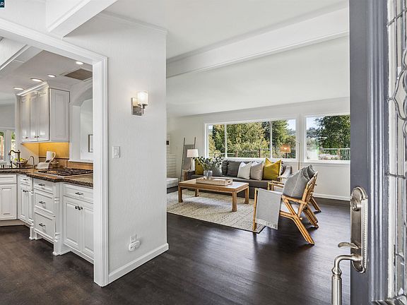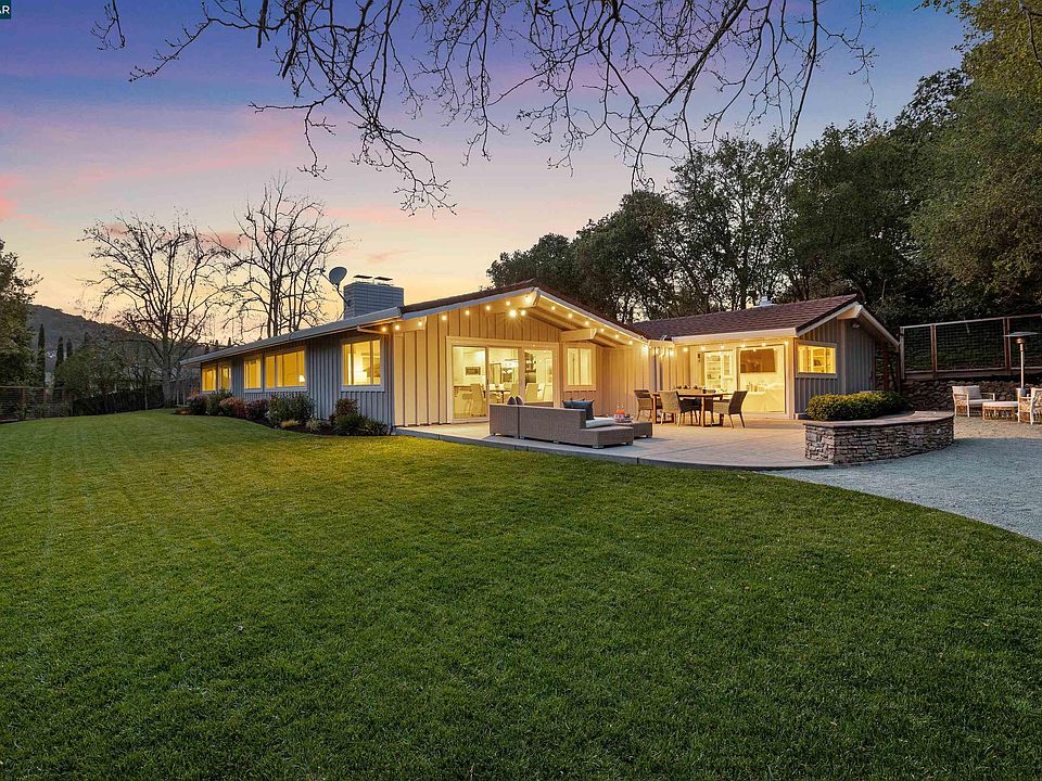 Situated in the sought-after Glorietta neighborhood of Orinda, this delightful single-story rancher is oozing with charm. As you enter the home, your gaze is immediately drawn to the expansive outdoor space, framed by majestic, mature trees. The open floor plan presents a beautifully equipped kitchen that effortlessly transitions into the dining area and living room, complete with vaulted ceilings, a warm fireplace, and an ideal spot for a desk or comfortable seating for people to gather. Sliding doors open to the outdoor patio, enlarging your living space & making indoor/outdoor entertaining a breeze. Ideally situated adjacent to the dining room is a versatile bonus room, providing the perfect retreat for various activities such as a playroom, TV room, or even a spot for homework (and perhaps a few video games!). The show stopper of this home is the sprawling .94-acre outdoor oasis with a patio and a huge flat grassy area, ideal for outdoor play and relaxation. Privately tucked away yet conveniently close to all amenities, this home is a rare find in one of Orinda's most beloved neighborhoods.