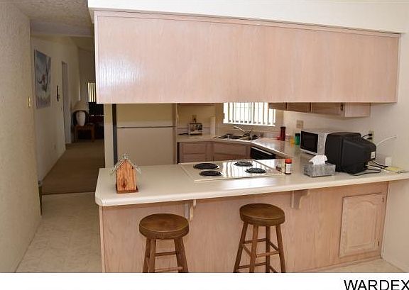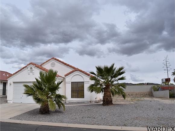 Looking for seclusion but not too far out? Only twenty minutes to Laughlin/Bullhead area from this 1990 3 bedroom, 2 bath home in Palm Gardens. So much potential here with a huge level lot that could accommodate your RV, boat and toys and still have room for a pool. Stunning desert scenery and panoramic mountain views also included at no extra charge.