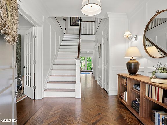 Sunny turn-key classic shore colonial located in the heart of Old Greenwich boasts a welcoming front porch, beautiful back terrace and a level lush yard with specimen trees. Built in 2011 by a respected local contractor this 5-bedroom home is finished on four levels with approximately 4500 sq ft of finished space. The 1st floor offers an open floor plan wonderful for entertaining and everyday living. The primary bedroom suite with large walk-in closets, a luxurious bath and a fireplace is on the second floor with 3 additional bedrooms, 3 full baths and the laundry room. The 3rd floor is finished with skylights and is perfect space for a home office. The lower level offers a double bedroom with a private entrance perfect for a nanny or in-law suite, a full bathroom, playroom and storage.