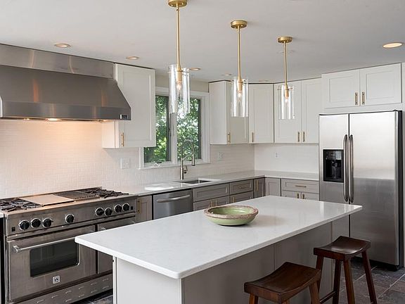 Welcome to Bradley Park, a sought-after neighborhood where kids play in the street and neighbors host block parties. Convenient living very close to the boat, train, schools, playgrounds, harbor and downtown. Open and spacious. You'll love the layout! The new eat-in kitchen feels fresh and current with a center island, quartz counters, subway tile and crisp gray and white cabinetry accented with designer hardware and lighting. The kitchen opens to a cozy, fireplaced family room. A great room with gas fireplace and attractive stone surround provides ample space for living, dining and lounging. The foyer and walk-in pantry/office keep you organized and clutter-free. The second floor has FIVE bedrooms - a huge master with en-suite bath, 4 good-sized bedrooms and a 2nd full bath, a rarity at this price point. The finished, walk-out lower level allows for storage and play. The .37 acre lot with shed, deck and private backyard is just enough for today's lifestyle.