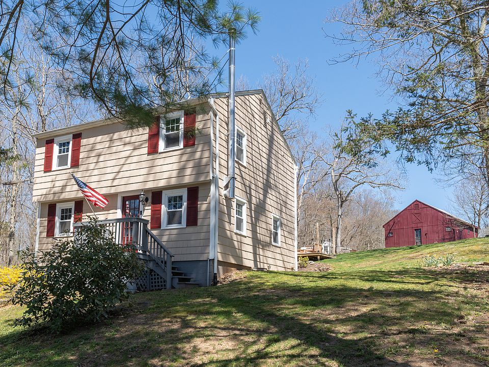 This charming & updated Farmhouse is perched on the most picturesque 2-acre plot with a majestic & fully restored barn. Located on a quiet country road yet just minutes away from downtown and the highway. Enter through the beautiful glass front door to find a sunny and inviting interior space. The living and dining rooms feature hardwood floors, chair rail and woodstove. Continue to the kitchen with white cabinetry, butcher block counters, new stainless-steel appliances and a backdoor mudroom. The new and improved second floor boasts vaulted 9-foot ceilings with new wiring, insulation, recessed lights and ceiling fans. Other recent updates to the home include the roof, windows, propane furnace & water heater, and septic system. Head out back to relax on the deck or explore the stonewalls, fruit trees, chicken coop or paddock. The barn features 3 horse stables, a hay loft, electricity and water. Most of the exterior was just recently replaced with new board & batten and freshly painted. To the rear of the property is nearly 500 acres of state land with trails to the Blackledge River. ** 3-RING Camera's (front door, backdoor and barn).** Private parcel between this property and state property. Neighbors have had the ok to pass over. New conduit and service line to barn. **Be careful of drop off at bottom left of driveway. Stay to the right when pulling in and out.**
