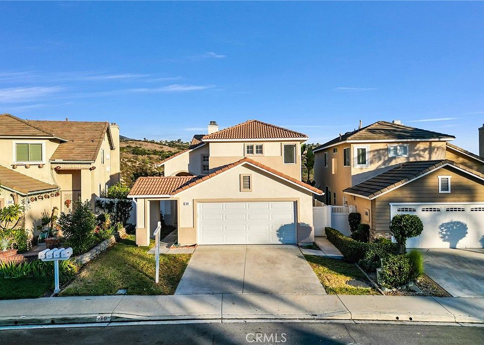 Discover a breathtaking panoramic view residence in Foothill Ranch. Enjoy the stunning view of hills and city lights in this gorgeous 2-story, 3-bedroom, 2.5-bathroom home -- a true gem you've longed for! Features include newer exterior paint, fresh interior paint, new light fixtures, brand-new carpet in all bedrooms, laminate floors throughout the ground level, double entry doors, vaulted ceilings in the living room, and ample natural light. The family kitchen boasts recessed lights, while the family room features a cozy fireplace for warm and inviting evenings. Step onto the backyard patio from the kitchen and relish in the unobstructed views. Upstairs, the master bedroom offers picturesque views and an ensuite bathroom with double vanity sinks, an oversized soaking tub, and a separate walk-in shower. Two additional bedrooms share a full bath with a bathtub/shower combo. Enjoy intimate gatherings in the backyard with friends and family, surrounded by stunning views. The Foothill Ranch Community Park provides access to a pool, spa, clubhouse, parks, tennis courts, sports courts, and hiking and biking trails in Whiting Ranch Natural Reserve. This home is conveniently located near schools, Foothill Public Library, restaurants, shopping, and major freeways. Don't miss out on this incredible opportunity! Hurry, this property won't last long! Note: A few of the images have been digitally staged.