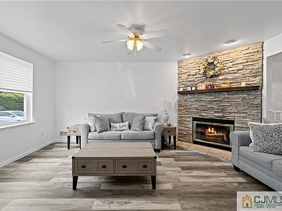 Your dream home awaits! There's nothing to do but unpack and relax in this gorgeously renovated, rare 3 bedroom Beaver Brook townhome! Brand new farmhouse style laminate flooring welcomes you in to the foyer complete with a large coat closet and opens up to the spacious family room which boasts an amazing woodburning fireplace with a stone hearth, ceiling fan, and recessed lighting! The dining room overlooks the family room and leads into the eat-in-kitchen. The renovated kitchen is a dream with its white shaker cabinets, stainless steel appliances, a spacious pantry, sliders to the yard, granite countertops and so much more! The powder room completes the first floor. Upstairs you'll find the oversized main bath with a tub/shower, custom tile work, and a jack and jill door to the primary suite. The primary suite features overhead lighting, a huge walk-in closet, and windows overlooking the yard! Upstairs in complete by two bedrooms both with plush carpeting and spacious closets. The full finished basement provides the perfect flex space to suit your needs! Freshly finished epoxy flooring in the rec room could be a possible home office, gym, or rec room! Centrally located off exit 8A of the NJTPK, close to the NYC Park & Ride, and easy access to Rt. 18, Rt. 9, Rt. 130, and Rt. 33 for shopping and dining!