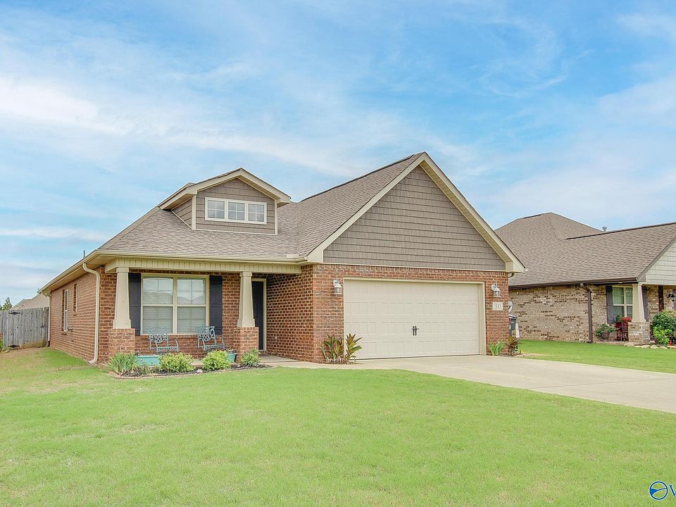 This gorgeous move-in ready home is in a well-maintained neighborhood with sidewalks, street lights and a community pool with waterfall just a few doors down! An open floor plan with gas fireplace and double trey ceilings in the family room, granite countertops, stainless steel appliances in the kitchen as well as island and pantry. Primary bedroom has not one, but TWO walk-in closets and also a separate soaking tub and shower. Plantation blinds in every room. Two covered porches for relaxing outside with a privacy fence perfect for your kids or pup to play in! The two car garage can also be a fantastic man cave as it has vinyl flooring, built in shelving and a ceiling fan.