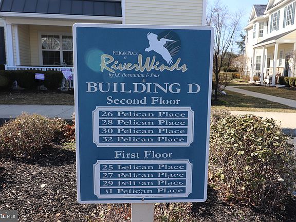 Welcome to the serenity of your new home. 30 Pelican Place, a second-floor condo, is located on the side of Building D. You will be entering into the Foyer which features a large coat closet and under-the-stairs storage area. The stairs lead you up to the open concept Dining Room/Living Room and out to your covered Deck (with outlet) where you can relax and enjoy the quiet and beauty of nature. Perhaps you would prefer making the Kitchen your first stop? The design provides an easy flow of living between the Kitchen and Family Room. The Kitchen is the perfect complement to your home with its 42-inch maple cabinets, Corian top, Hardwood Floors, and its intimate Breakfast Nook. Walk down the hallway to the double doors that open to your Primary Bedroom Suite featuring a large walk-in closet and large private Bathroom and stall show with bench. Your new home also features a Second Bedroom, updated Main Bathroom and Laundry Room with cabinets. What is on the other side of that door in the Laundry Room? A 12 ft x 5 ft Storage Room that will simply amaze you. Life at Pelican Place at RiverWinds offers you the enjoyment of the beautiful community of RiverWinds with its Walking Trails, Community Center, Gym (just a small monthly fee to join) and waterfront dining at RiverWinds Restaurant. You can relax and meet up with friends by the river or for a round of golf or a tennis match at RiverWinds Golf and Tennis Club. Easy access to shopping and restaurants, WAWA and Rt 295 are only minutes away. Make your appointment today.