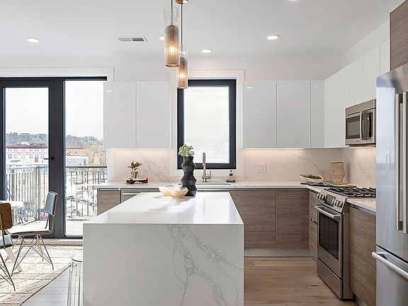 Gorgeous South Facing 2 bedroom with private balcony and 1 garage parking space, now available at 30 Penn. Rising on a quiet enclave, 30 Penn is an ultra-chic 46-unit condo building located in Allston near Boston Landing, one of the fastest growing neighborhoods in Boston! Designed in a contemporary style w/ Scavolini Italian kitchens and bathrooms, with waterfall quartz countertops, Bosch appliances, European white oak wide plank floors, Central AC/Heat, Samsung Washer/Dryer curates a luxurious aesthetic throughout the space. Enjoy an on site fitness center, bike storage, pet spa, a residents lounge with roof terrace, garage parking and additional storage. With a Walk Score of 97, 30 Penn is convenient to local restaurants, shops, elite training facilities, music venues, the Charles River, Harvard Business School, Boston University, the Boston Landing train stop and major highways. Elevate your lifestyle at 30 Penn. Model units now open for tours!