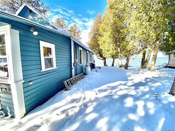 With 50 ft of prime St Lawrence Seaway River frontage you'll make your best summertime memories here at this fantastic camp. Situated on just over a quarter of an acre outside there are 2 sheds, a dock that they bring out of the water for the winter, and of course the adorable cottage. The cottage will come mostly furnished. Enter into the large back porch, great for storage and then into the kitchen. All of the necessities for cooking and eating will stay. There is a spacious living room with plenty of room for games and entertaining while not outside enjoying the summer sun and water. The two bedrooms both have full sized beds and dressers. The full bath has the water heater and all of the necessities. Water is pulled from the river, septic tank on sight. The front porch overlooks the St Lawrence when you need some shade but don't want to miss a minute of enjoying the water views. The seawall protects the cottage, and the dock gives you easy access to the water. There are a few year round homes nearby.