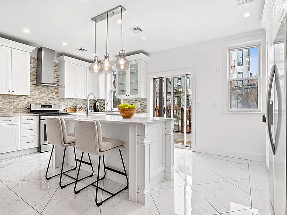 INSTANT MONEY MAKER! Amazing income producing two Family Bushwick townhouse has it all and is move in ready! This turn of century house was built in 1905 and completely gut renovated in 2014. Currently configured with a owners duplex with 3 bedrooms, plus a home office and 2.5 bathrooms. Over a garden, level 2 bedroom, 1 bathroom apartment. Garden Apartment is currently occupied with an income-producing tenant paying a strong market rate rent! (Property can be delivered vacant if necessary.) Additionally a fully finished basement provides additional storage for the entire property. As you enter the owners duplex, there is a generous living room that displays a stunning & modern decorative stone fireplace, charming exposed brick walls, recessed lighting and wide plank wood flooring all in perfect condition. There is ample space for formal dining. The kitchen is modern with a large center island and perfect for any chef. The beautiful white stone countertops are nicely paired with a glass backsplash and white cabinetry for an ultra-clean look. Stainless steel appliances are featured throughout the kitchen. There is a huge deck just off the rear of the kitchen that leads to a shared garden. All 4 bedrooms are located upstairs. The master bedroom easily fits a king sized bed, features a Juliet balcony and has an en-suite full bath. Washer / dryer is also located in the unit. The garden level of the home is your moneymaker! This level of the home has 2 bedrooms, 1 bathroom, and a shared large garden. With similar finishes to the owners duplex the large living room features: the decorative stone fireplace, recessed lighting and wide plank wood flooring all in excellent condition. The open kitchen plan is modern with beautiful white stone countertops are nicely paired with cherry cabinetry. Stainless steel appliances are also included. Both bedrooms are generous in size. There is a laundry room located in the basement to service this unit. This one is not to be missed! Nicely located on the Bushwick / Bed-stuy border with easy access to shopping an transportation.
