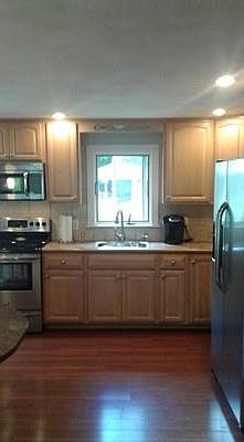 It will be love at first sight when you come see this lovely move in ready ranch in desirable Berkley located just minutes from the highway. The home has so much to offer both inside and out you will not be disappointed. The newly remodeled bright sunny kitchen is open to the large living room. Hardwood floors have throughout the upstairs bedrooms have just been refinished. The finished basement provides wonderful add living space that includes a base board heat plus a nice warm pellet stove and a full bath with sooaking tub, bedroom w/ egress window, large living room, & laundry room.It doesn't stop there the sellers have gonabove and beyond with the outside entertaining areas. Move in and plan your summer parties.